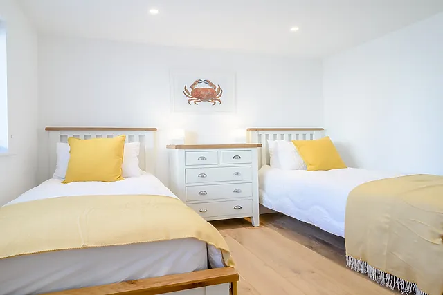 The property features four tastefully furnished bedrooms, including one super-king, one king-size, one twin, and one bunk bedroom suitable for children under 14 years.
