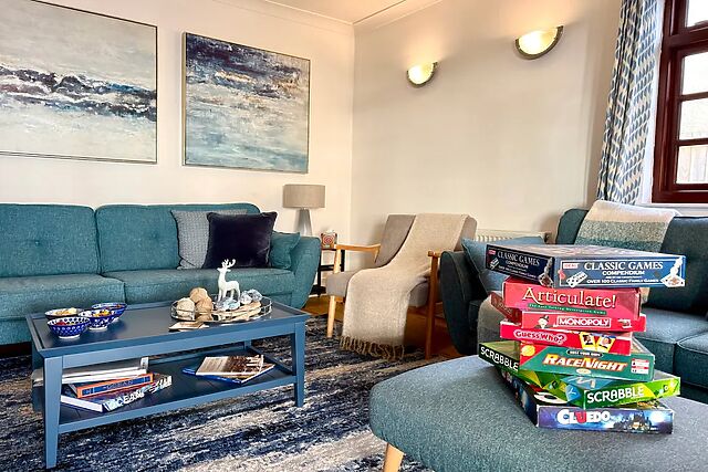 The ground floor also offers two bedrooms; a double bedroom and a flexible twin with zip+link beds that can provide a fourth double if preferred. A practical shower room equipped with toilet and sink makes this property ideal for guests with limited mobility.