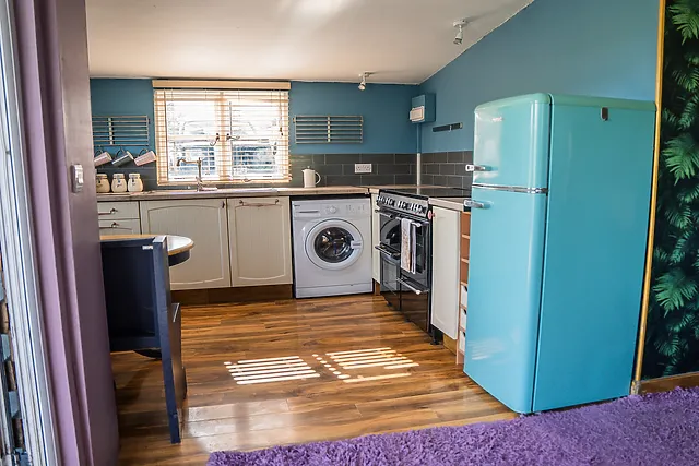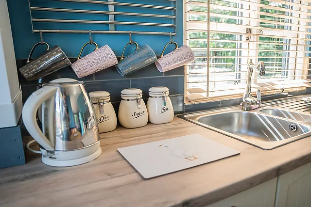 Inside, the open-plan living space includes a cosy wood burner, a Smart TV for entertainment, and a fully equipped kitchen for home-cooked meals. Step outside onto the private deck to enjoy the breathtaking views, often graced by the sight of deer.