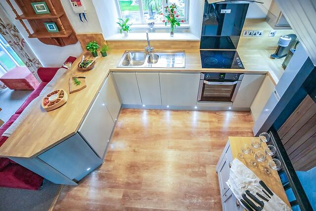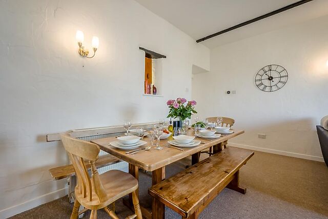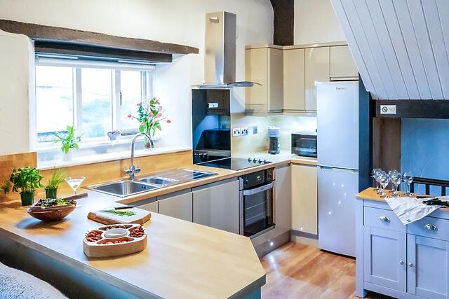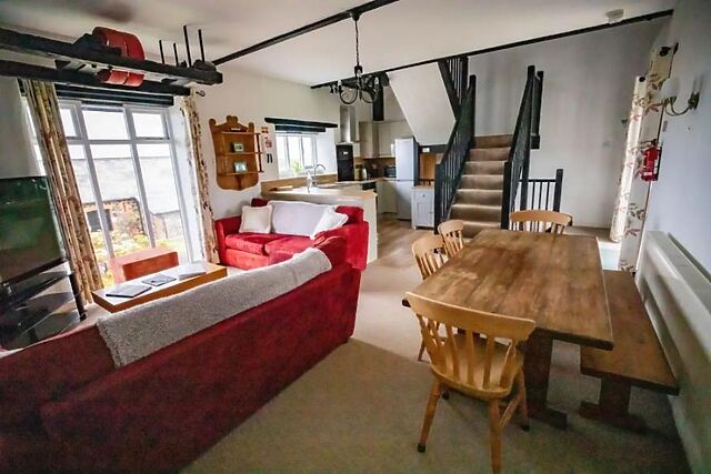 Up on the first floor awaits the property’s social heart, a light and airy open-plan living space combining a vibrant kitchen with a farmhouse-style dining space and welcoming lounge. Unwind in the lounge area after days of walking; sink into the soft seating and catch your favourite series on the Smart TV.