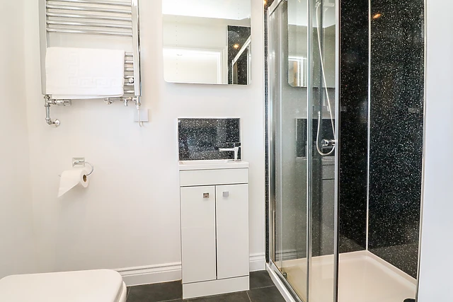 There is a large, private off-road parking area available for guests, capable of accommodating up to 6 cars, providing convenience and security.