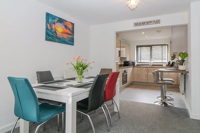 Step into the open-plan living space where relaxation and entertainment await, complete with a Smart TV and a fully equipped kitchen. Outside, indulge in the secluded patio garden, complete with furniture for al fresco dining and a luxurious hot tub, promising relaxation under the stars.