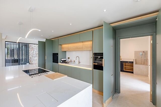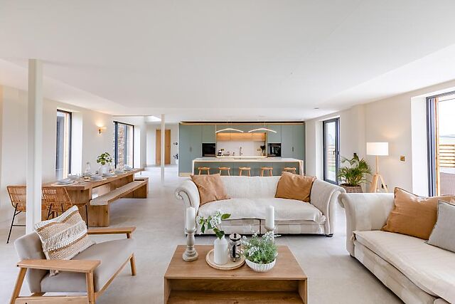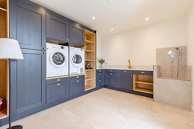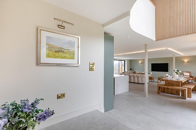 Secret doors lead off either end of the kitchen, discreetly offering a large larder and a spacious utility room, handy for coats and boots and washing off your furry friend after a day at the beach. Heading back towards the entrance hall there is a handy ground floor WC.