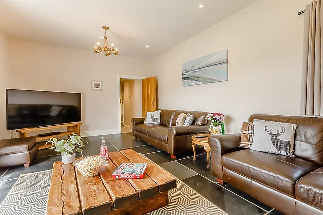 The accommodation is fully equipped with modern amenities including a well-appointed kitchen, Smart TVs, DAB Radios, Bluetooth speakers, and Wi-Fi, ensuring a comfortable and connected stay.