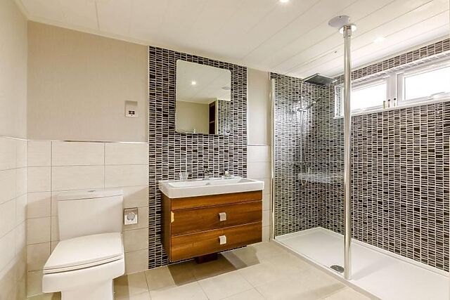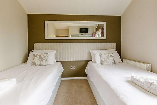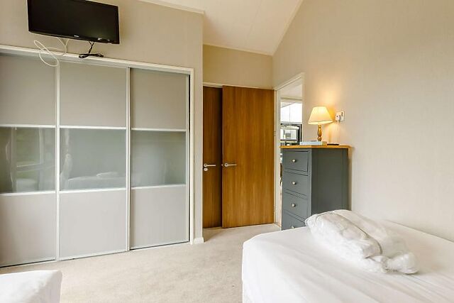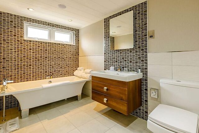The lodge also features a Jack and Jill bathroom with a sumptuous freestanding bath and a waterproof TV, adding a touch of opulence to your stay.