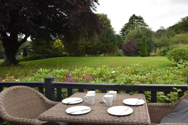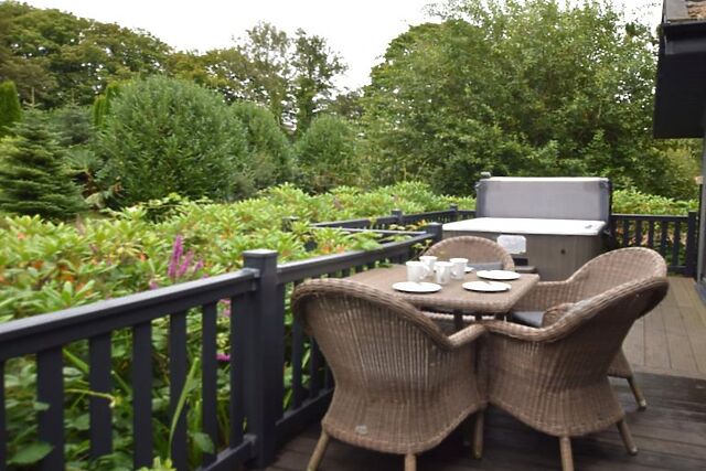 Relax in the spacious open-plan living area, complete with a fully equipped kitchen and cosy sofas. Step outside to your private decking area to unwind in the bubbling hot tub under the stars, or explore the beautifully landscaped gardens of Kentisbury Grange.