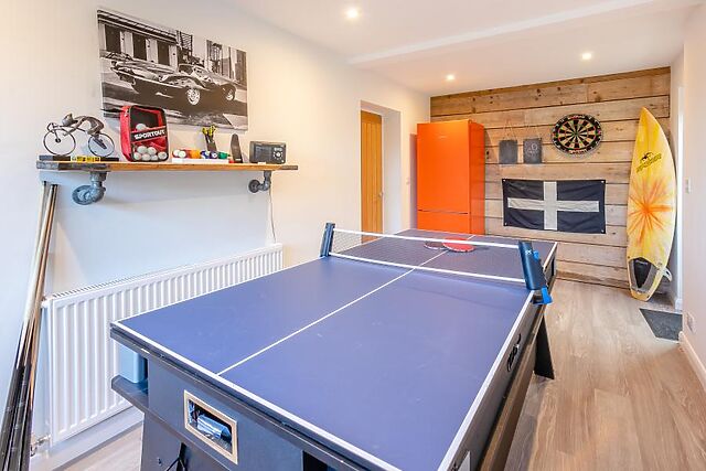 There’s an indoor games room and the large, enclosed garden offers distant sea views, as well as a gorgeous hot tub. Colourful Bude is famous for its huge expanse of golden sands, beloved by surfers and families alike and the town has a great selection of shops and eateries.