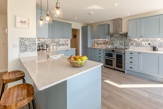 There are five charming bedrooms and four bathrooms, across two floors, plus a cosy snug. A wood burner adds a cosy touch to the bright and spacious lounge and there’s an impressive kitchen/diner.