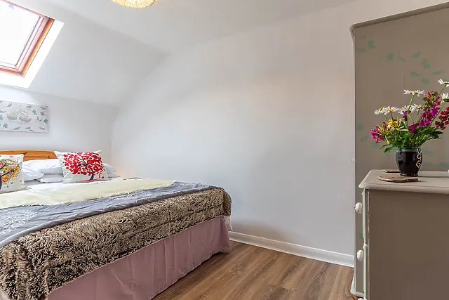 The accommodation has two bedrooms, one furnished with a king-size bed and the other with a double bed, providing comfortable sleeping arrangements for up to four guests.