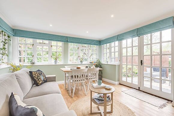 The fully enclosed courtyard garden means up to two dogs can roam freely and safely. A charcoal BBQ and garden furniture complete the outdoor space.