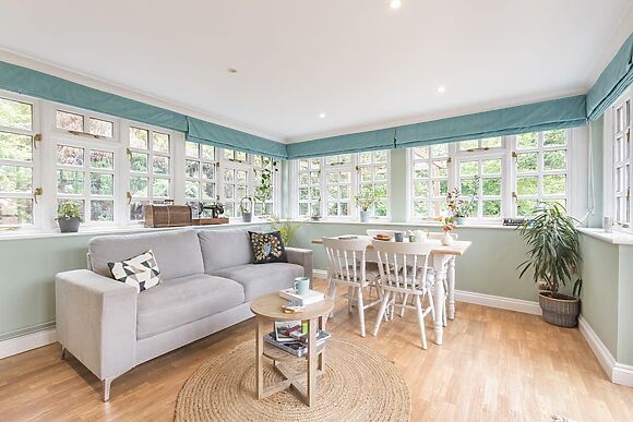 A country-style kitchen-diner seats four with full appliances. The living room has a log-burning stove and full Sky TV package.