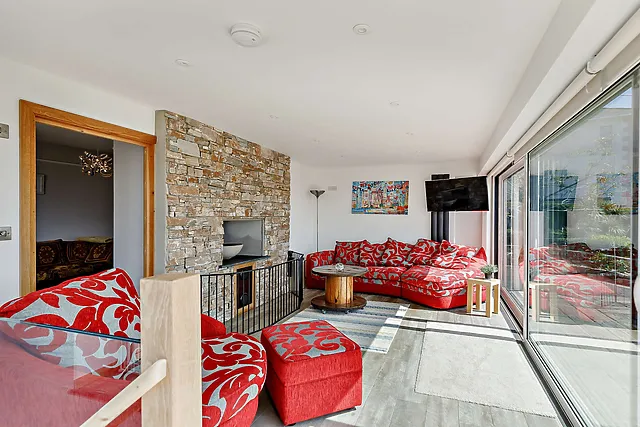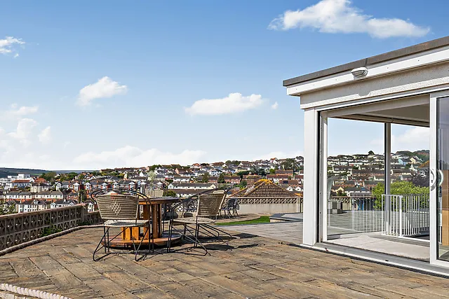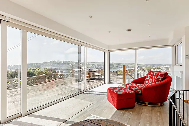 The villa's raised position affords breathtaking views across the River Teign, making it a perfect sanctuary for relaxation and entertainment.