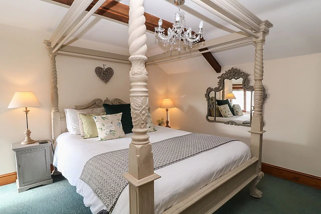 The property boasts five tastefully decorated bedrooms, including a king-size with en-suite, a double, a second-floor double with en-suite, a second-floor twin, and a family room with a four-poster king-size and single bed.