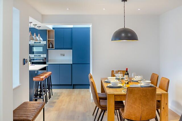 Pull the bi-folding doors open to the garden from the main living area to create seamless indoor/outdoor living. Whip up delicious meals in the chic kitchen and gather round the table to dine.