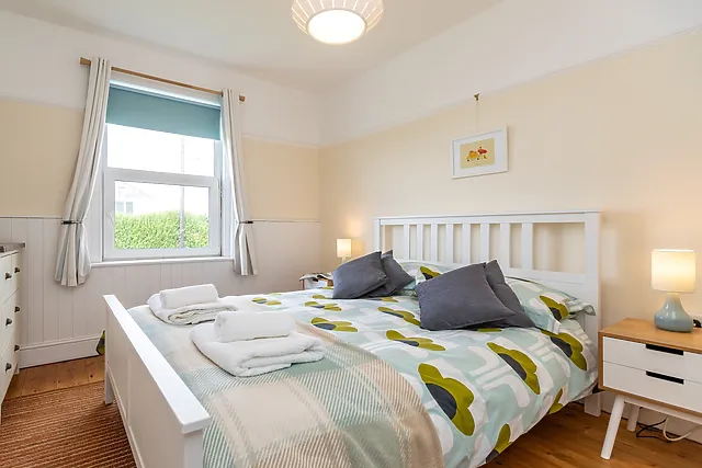 The accommodation features three tastefully decorated bedrooms, comprising one king-size room, one twin room, and one bunk bedroom, catering to various family or group needs.