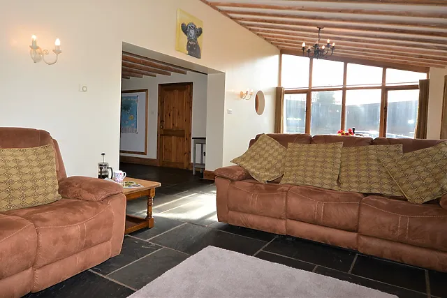 The accommodation boasts four cosy bedrooms and three bathrooms, ensuring ample space for relaxation. The heart of the home is the large farmhouse kitchen, perfect for preparing meals and recounting the day's adventures. Step outside to find an enclosed patio area complete with a private hot tub, offering a tranquil spot to unwind under the stars.