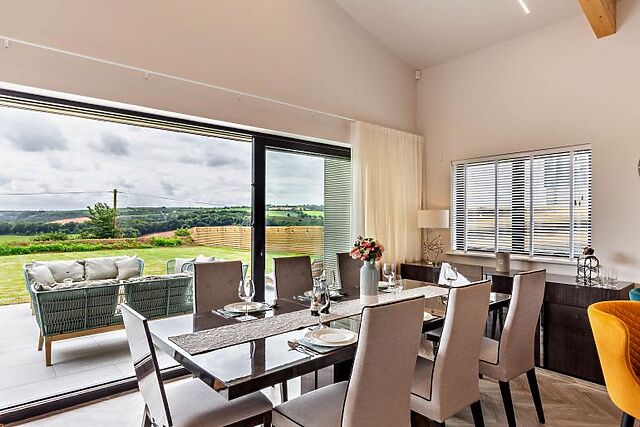 Welcome to Hillside Barn, a stunning glass-fronted barn conversion in Littleham, Devon. This beautifully designed single-level home sleeps up to 8 people and offers a stylish, contemporary retreat.