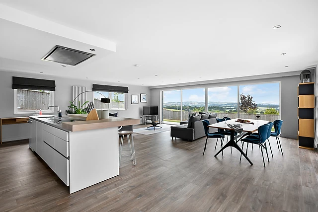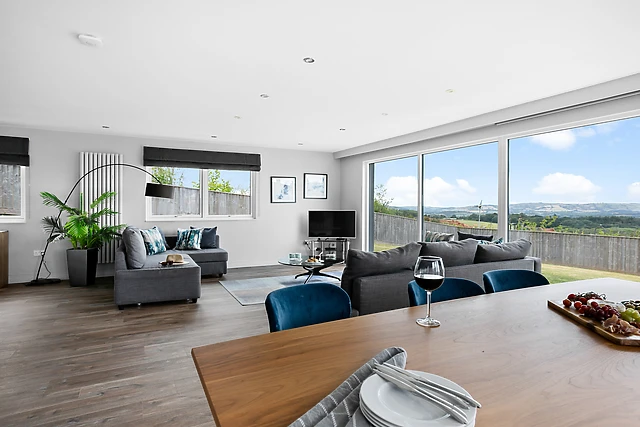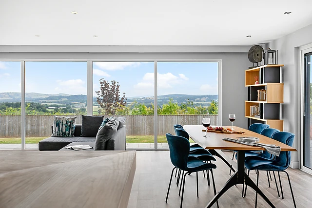 Throughout the home, floor-to-ceiling windows offer extraordinary views of the surrounding rolling hills and farmland, with a chill on the outdoor balcony or on the furniture in the garden transporting you and your loved ones to a state of peaceful bliss. On warmer days, alfresco feasts can be savoured with the help of a brick-built pizza oven and barbecue, the perfect way to spend a summer's day.