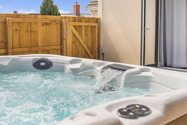 There’s a beautiful garden area – take the opportunity to unwind in the outdoor hot tub under the stars during your stay. Private parking for four cars.