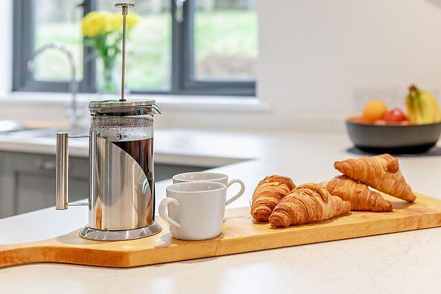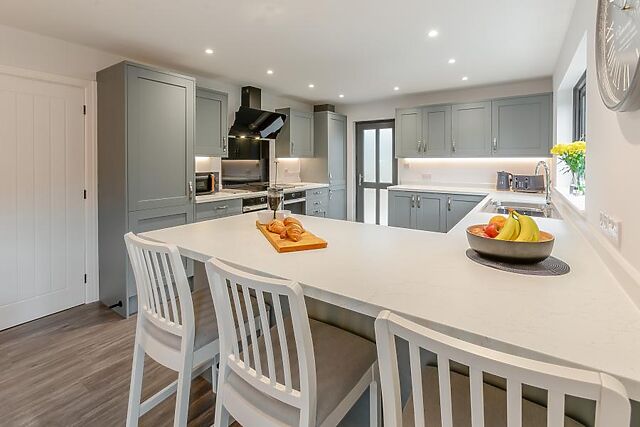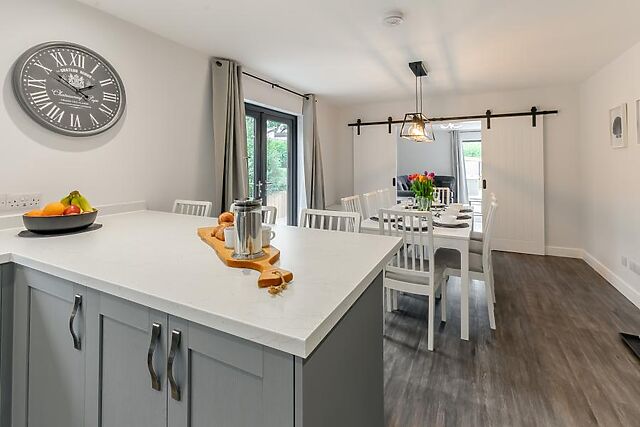 Step inside this elegant cottage and you’ll be greeted by the stylish lounge. Slip onto the sofa and take a moment to soak up the elegance of this lovely space, before heading through the sliding doors into the smart, open-plan kitchen/dining with breakfast bar and chic dining table.