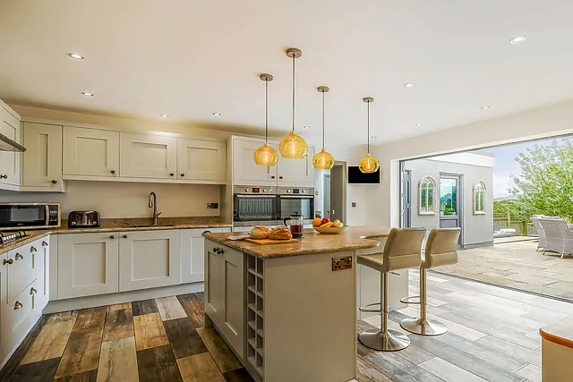 Boasting a games room, underfloor heating, and built-in speakers, this home is a sanctuary of entertainment and relaxation. The open-plan living area, with bi-folding doors, invites the beauty of Dartmoor inside, while the high-spec kitchen is a culinary artist's dream.