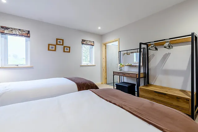 The ground floor bedrooms, one king-size and one twin, share a Jack-and-Jill style shower room, ensuring comfort for all ages.