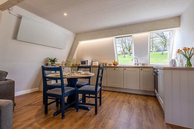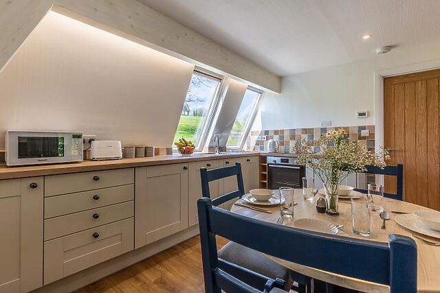The fully equipped kitchen has everything you need to prepare delicious meals, which you can savour around the dining table.