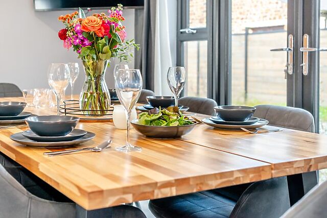 The kitchen/diner is just as stylish and encompasses all you will require to cater for your party before dining together. There is also a utility room and a separate WC downstairs.