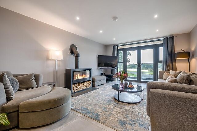 Ascend the attractive staircase to an incredible family suite. This features a super-king-size bedroom, with a Smart TV and doors to a balcony overlooking the lake, as well as a twin bedroom and an en-suite bathroom, with a spa bath.