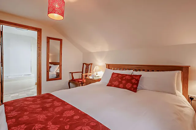 The master bedroom boasts a king-size bed and an en-suite bathroom, ensuring a restful night's sleep.