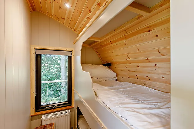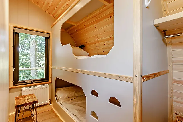 The accommodation includes a king-size bed and a bunk bed suitable for children, ensuring a cosy night's sleep for all.
