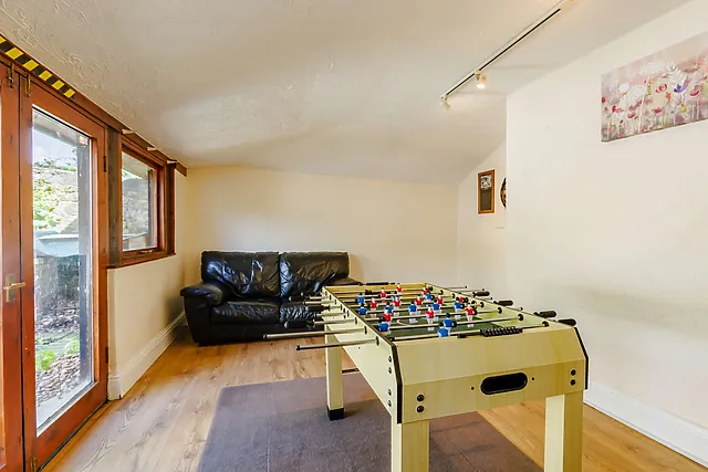 Yes, the property includes a games room equipped with a darts board, table football, and a selection of books and games. This ensures entertainment for guests of all ages during their stay.