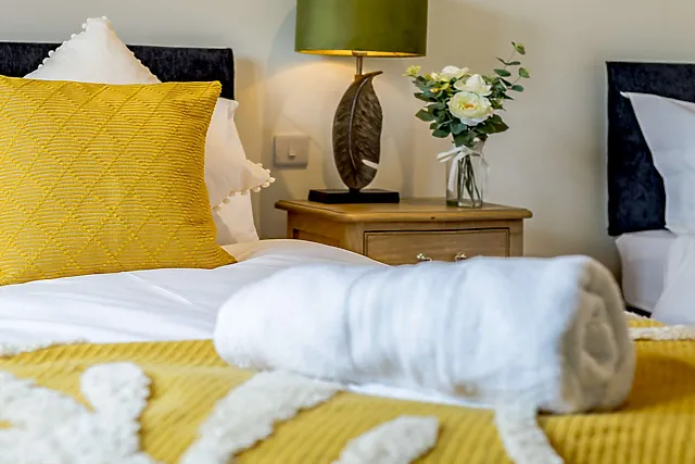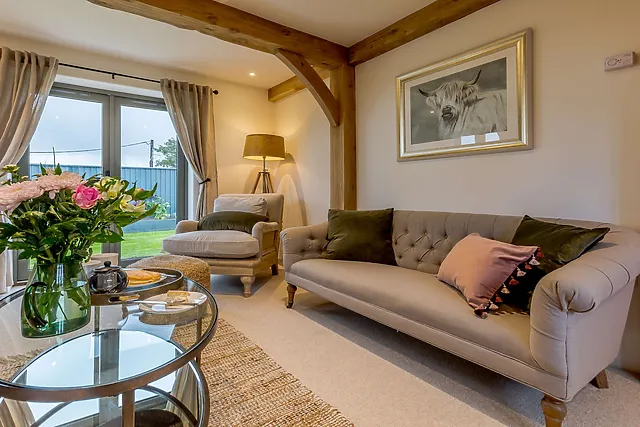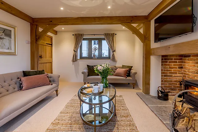 The property is equipped with underfloor heating and a wood burner in the lounge, with the first basket of logs included to ensure a warm and cosy stay.