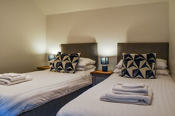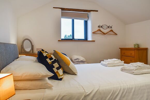 Two bedrooms sleep four a double with en-suite shower room and a king-size with a separate bathroom. A washing machine is included.