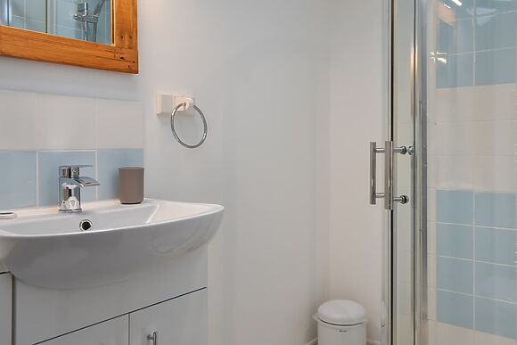 The double bedroom has its own en-suite shower room and the king-size bedroom is served by a separate bathroom.