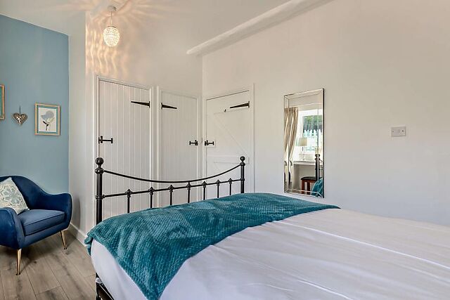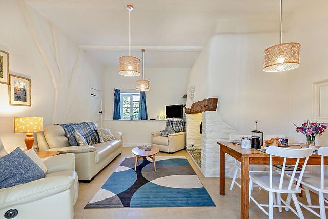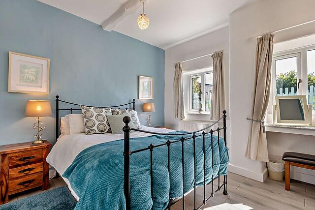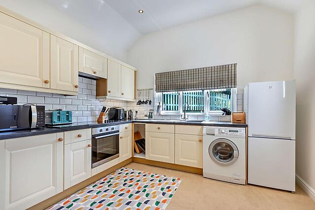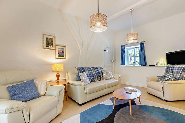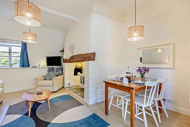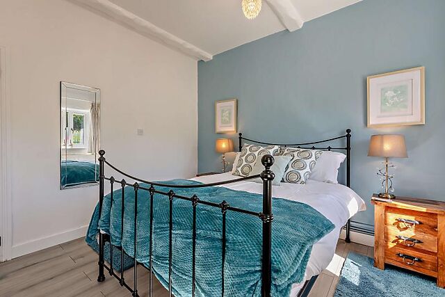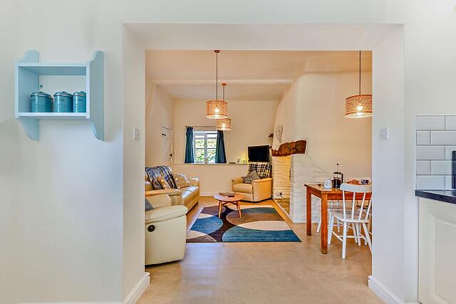 This lovely two-bedroom cottage in Langtree is set on 8 acres of farmland and boasts excellent facilities including a private hot tub, enclosed garden, and plenty of shared on-site farm activities. The open-plan living area is a tranquil space with a pleasant mix of contemporary decor and traditional architecture, including exposed beams, brickwork, and an inglenook fireplace with a wood burner-effect electric fire.