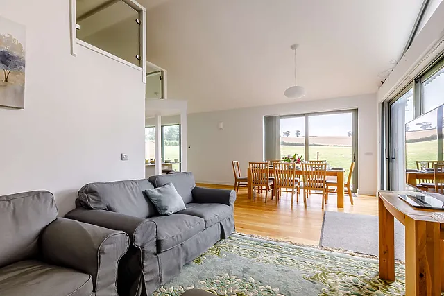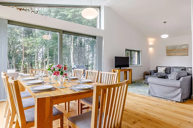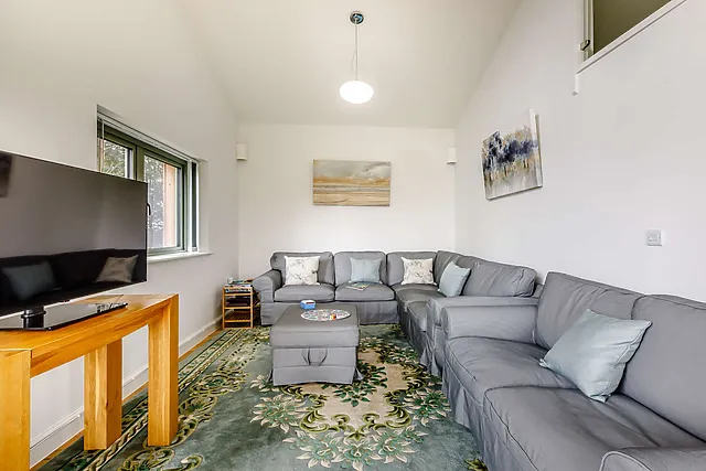 Inside, the open-plan lounge, kitchen, and diner provide a spacious and modern setting for relaxation and meals. The property is equipped with a Smart TV and Wi-Fi, although connectivity may vary due to the rural location.