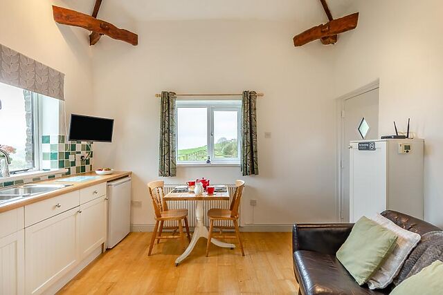 Enjoy sit-down meals at the table beside the window, then retreat to the soft sofa to let your food settle, flick on the Smart TV, or simply savour the rural views through the windows. When it’s time to call it a night, a restful double bedroom beckons, served by a fresh en-suite shower room.