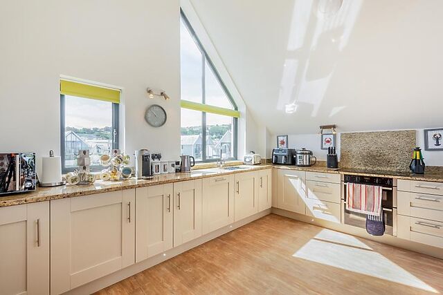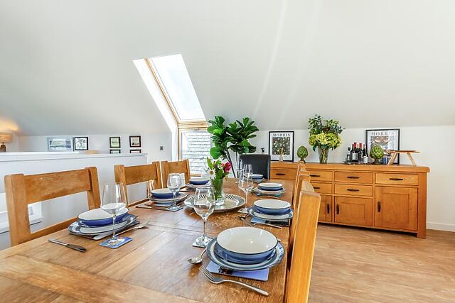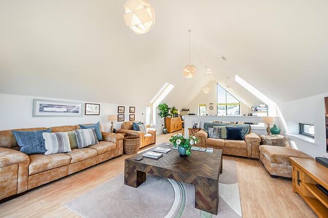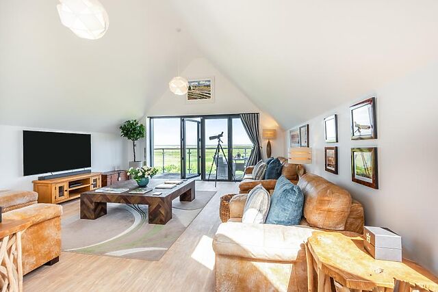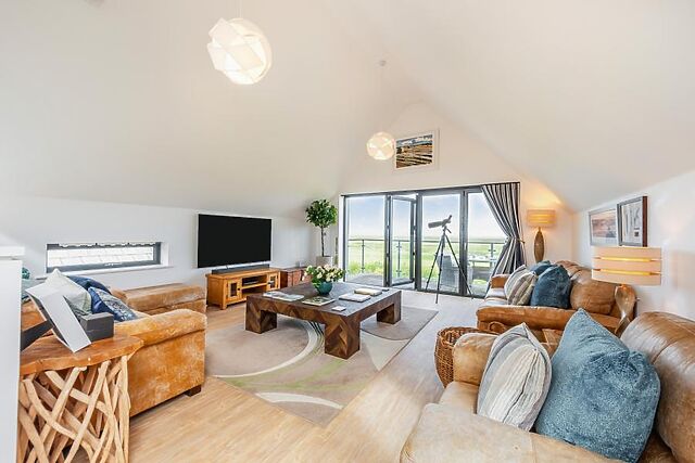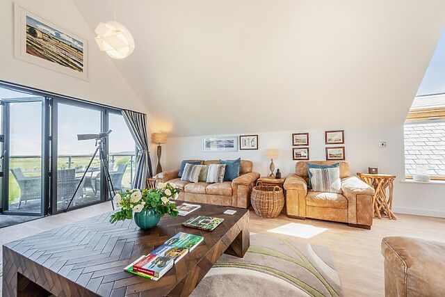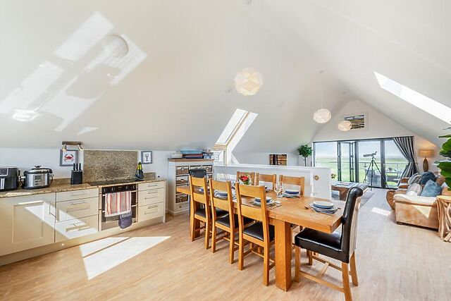 Younger guests will love a day out at The Big Sheep theme park (3 miles), and you’ll find a great selection of pubs and eateries in Bideford (2.5 miles) or Barnstaple (8.5 miles) to round off your day. This bright and airy holiday home features a reverse-level layout, with high ceilings and skylights allowing natural light to flood the open-plan living space on the first floor.