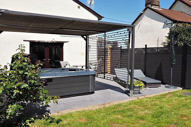 Step outside to discover a private hot tub, set within an enclosed garden with decking, offering the ultimate relaxation after a day of exploring.