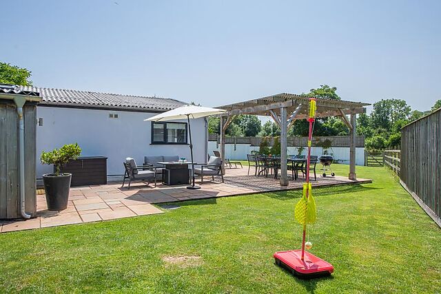 Fire up the BBQ, let the kids play on a lawned area and relax on the seating area under the pergola. There is private off-road parking for four cars.