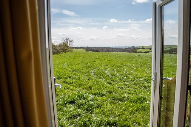 Thoughtful touches such as bathrobes and a Smart TV ensure a comfortable stay. The shepherd's hut is nestled within an enclosed garden, offering privacy and uninterrupted views of the surrounding fields.
