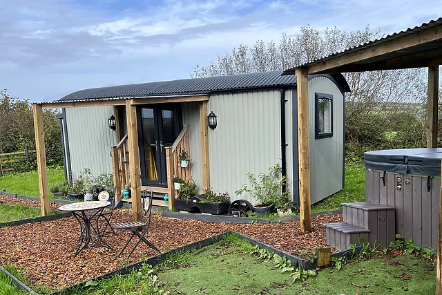 Welcome to the enchanting Oakford Shepherds Hut, a bespoke-built sanctuary perfect for couples seeking a stylish retreat amidst the Devon countryside. This unique accommodation sleeps two and offers a delightful fusion of rustic charm and modern comforts, including a luxurious wood-fired hot tub.
