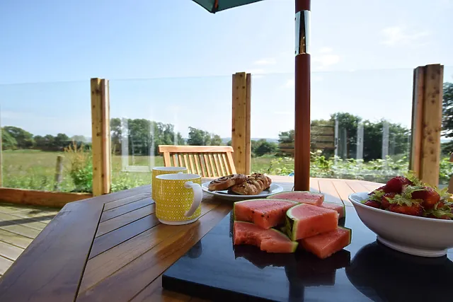 Bi-fold doors open from the dining area to an enclosed decked terrace, where you can indulge in al fresco dining or unwind in the private sunken hot tub with picturesque field views.