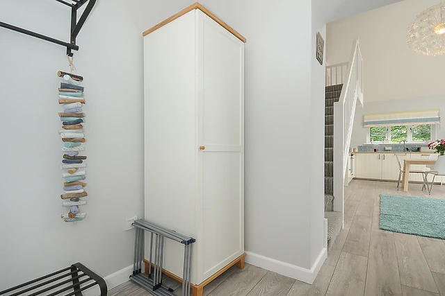 The ground floor also houses a sleek bathroom, perfect for a relaxing soak after a day of exploring the Devonshire coast. The heart of the home is undoubtedly the kitchen/diner, where you can prepare delicious meals using the array of appliances at your disposal, before gathering at the dining table to enjoy a family feast.