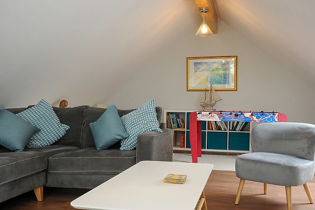 This contemporary space adds an air of opulence and features bi-fold doors opening up onto the patio. Venture up to the first floor to discover an inviting sitting room, complete with a TV and table football, providing entertainment for all ages.