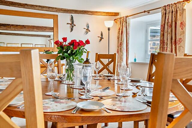 The ground floor bedroom offers easy access with an en-suite shower room. The large country-style kitchen is fully equipped, and the dining areas are perfect for gathering everyone together for memorable meals.