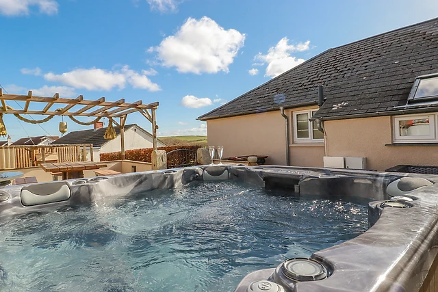 Yes, the accommodation features a luxurious hot tub, perfect for relaxation and unwinding in the privacy of the rear patio.