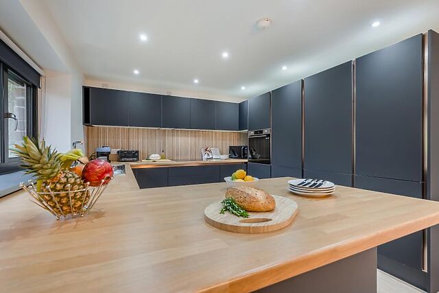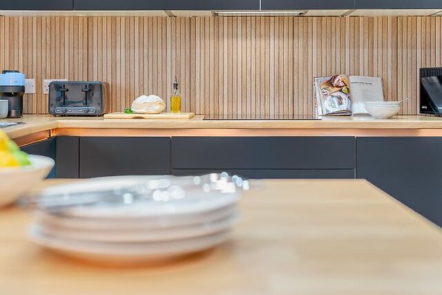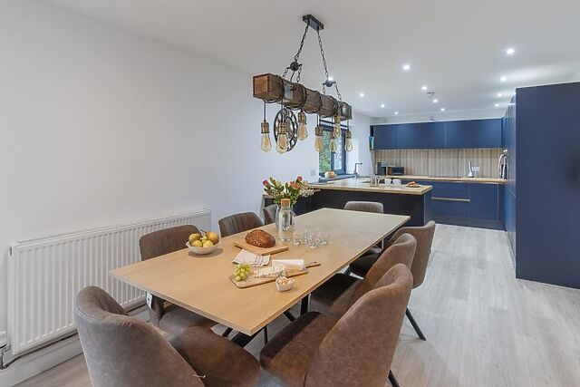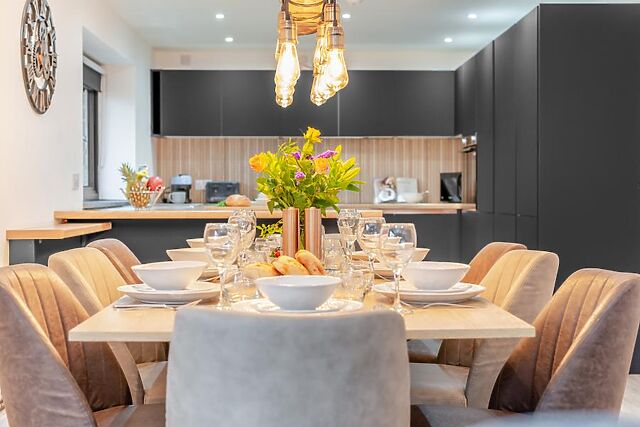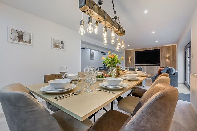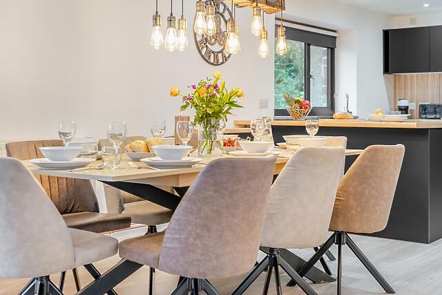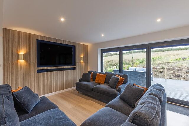 Unwind in the lounge space; sink into the soft seating and flick on the Smart TV for easy entertainment. When stomachs rumble, the contemporary kitchen provides everything needed for cooking up holiday feasts, to be enjoyed at the wooden dining table or alfresco-style out on the decking.