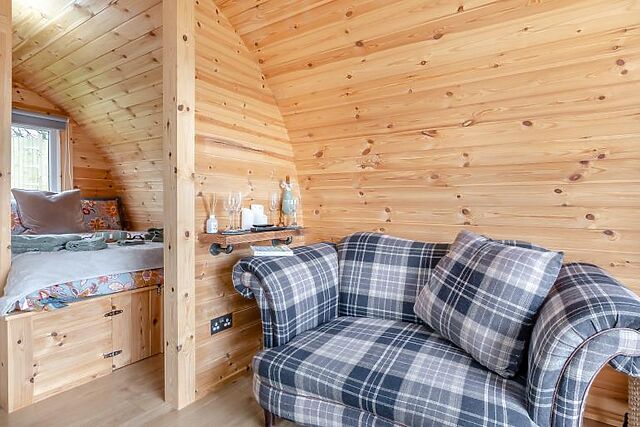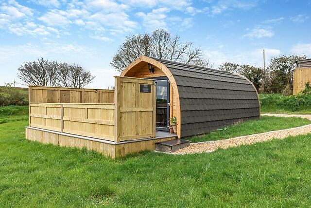 Pod Olive in Crediton, Devon, is a romantic retreat perfect for couples seeking tranquillity and comfort. This uniquely designed pod sleeps two and offers a studio-style lounge, kitchen, dining, and sleeping area, all thoughtfully appointed for a cosy stay.
